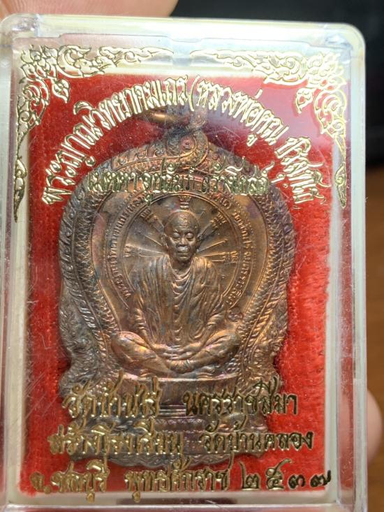 เหรียญนั่งพานหลวงพ่อคูณ วัดบ้านคลอง เนื้อทองแดง พร้อมกล่อง no.3
