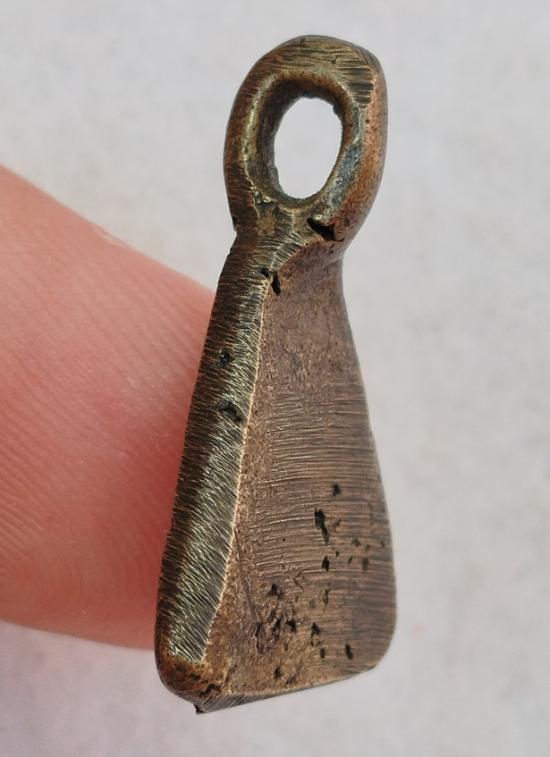 พระล้อพิมพ์ เหรียญหล่อจอบเล็ก หลวงพ่อเงิน ด้านหลังตะไบหยาบ