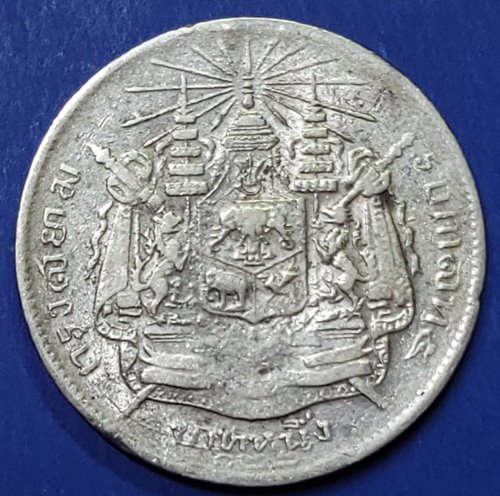 เหรียญบาทหนึ่ง รัชกาลที่ 5 หลังตราแผ่นดิน มี ร.ศ.๑๒๒