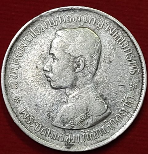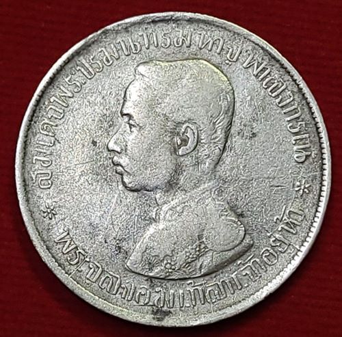 เหรียญบาทหนึ่ง ในหลวงรัชกาลที่ 5 ด้านหลังมี ร.ศ. นิยม หายาก