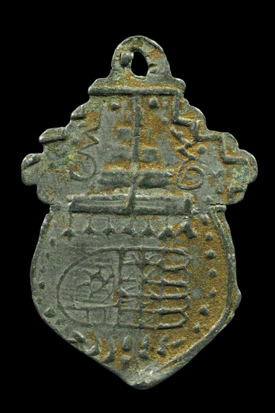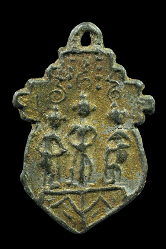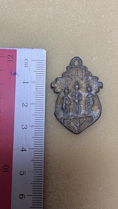 เหรียญหล่อ เนื้อชินตะกั่ว เก่าเเท้ไม่ทราบที่ มีทาบร์อนทองเก่ามา สภาพสวยตามรูปครับ |