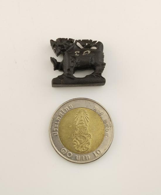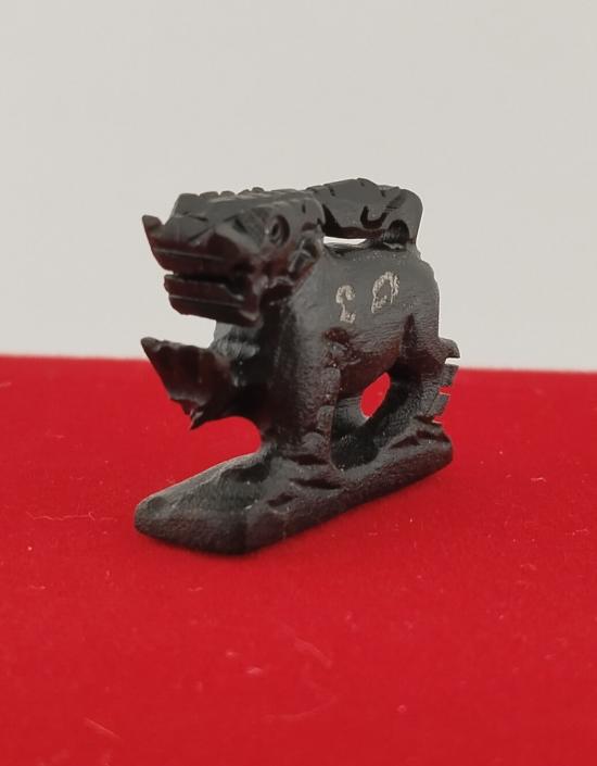(เคาะเดียว คัดสวย ตัวใหญ่) สิงห์แกะสลัก หลวงพ่อสิน เนื้อเขาควายดำ พร้อมซองยันต์เดิมจากวัด #04