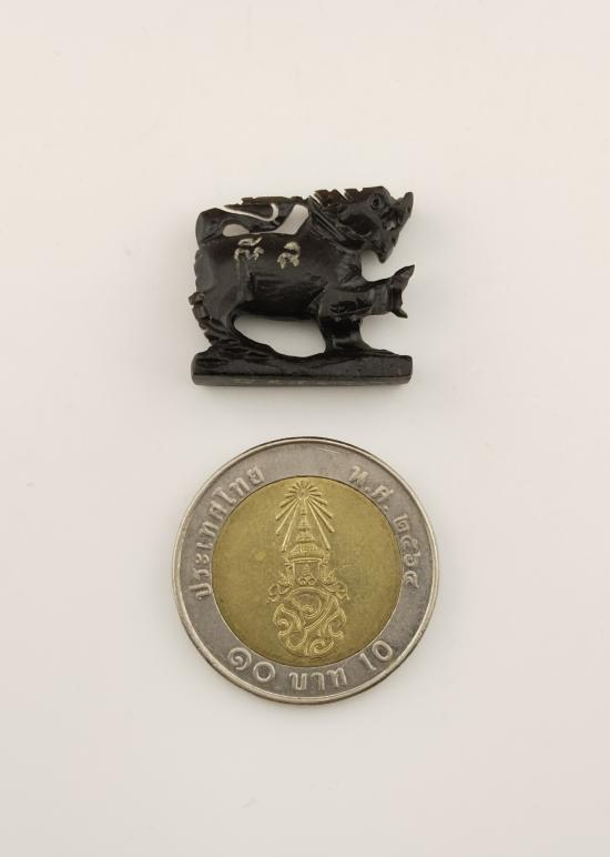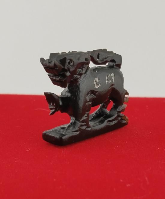 (เคาะเดียว คัดสวย ตัวใหญ่) สิงห์แกะสลัก หลวงพ่อสิน เนื้อเขาควายดำ พร้อมซองยันต์เดิมจากวัด #05 |