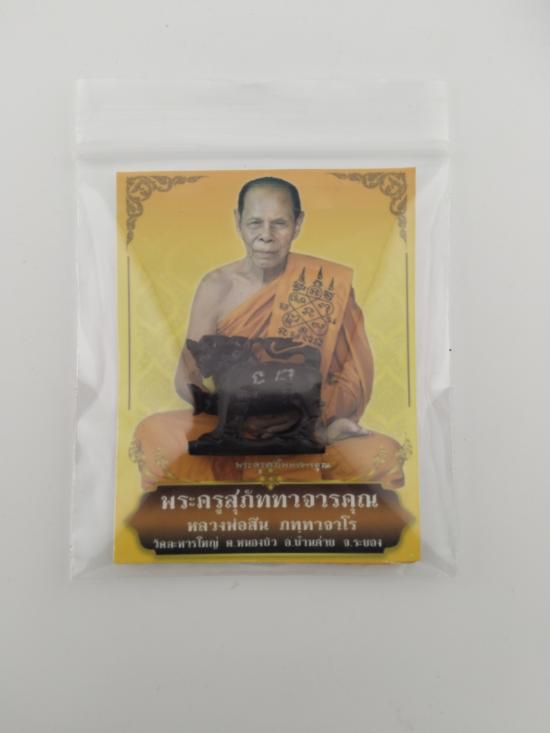 (เคาะเดียว คัดสวย ตัวใหญ่) สิงห์แกะสลัก หลวงพ่อสิน เนื้อเขาควายดำ พร้อมซองยันต์เดิมจากวัด #05