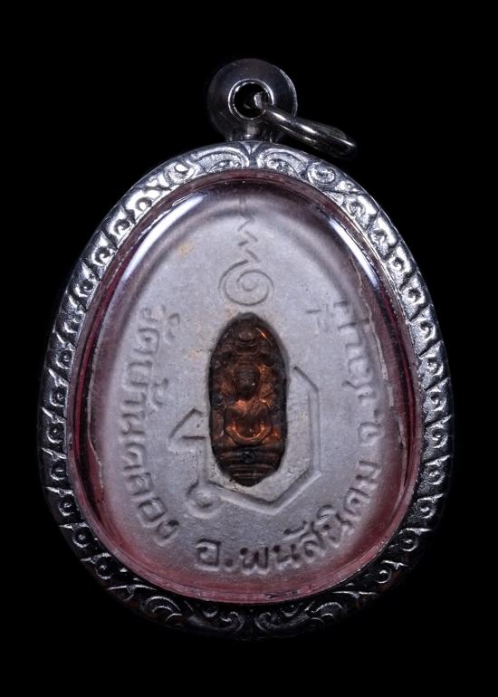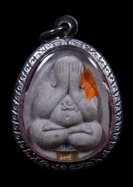 ปิดตาวัดบ้านคลอง รุ่นสารพัดดี พิมพ์จัมโบ้ เนื้อผง หลังพระนาคปรกใบมะขามและฝังตะกรุด ปี2538 ใส่กรอบแสตนเลส แดงเคาะแรก
