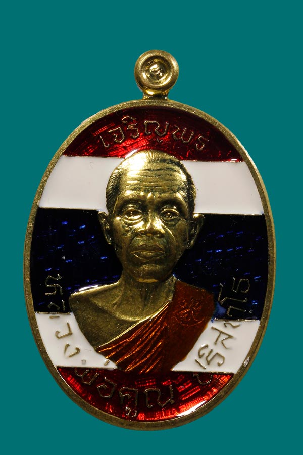 เหรียญนำฤกษ์ หลวงพ่อคูณ รุ่น พิมพ์2หน้า เจริญพรบน - เจริญพรล ่าง 92 บล็อกแรก เนื้อทองฝาบาตรลงยาลายธงชาติ ออกวัดแจ้งนอก ป ี 57