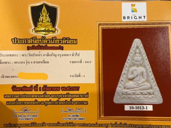 พระผงของขวัญ วัดปากน้ำ ภาษีเจริญ กรุงเทพ พ.ศ.2514 รุ่น 4 พร้อมใบประกาศนียบัตร รางวัลที่ 1
