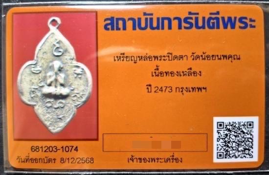 เหรียญหล่อพระปิดตา วัดน้อยนพคุณ เนื้อทองเหลือง ปี 2473