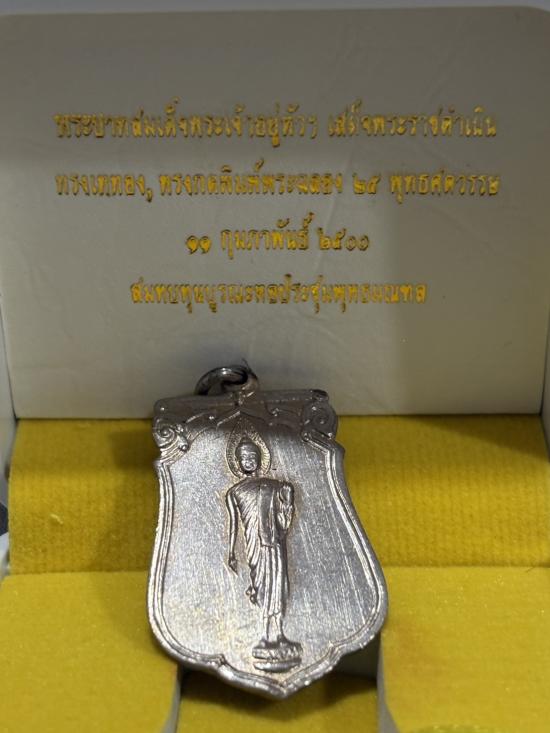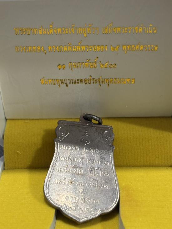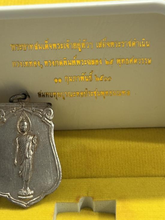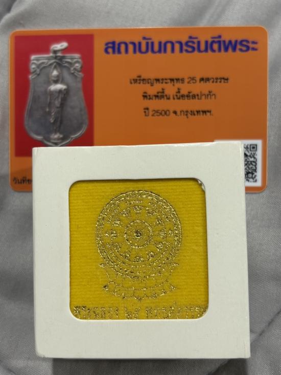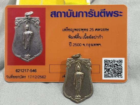 เหรียญพระพุทธ 25 ศตวรรษ พิมพ์ตื้น เนื้ออัลปาก้า ปี 2500 กรุงเทพฯ พร้อมบัตรรับรอง