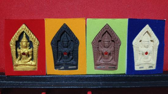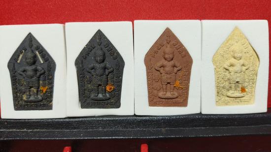 แบ่งปัน พระผงขุนแผน รุ่นเจ้าสัวเฮงเฮงรวยรวย ครูบากฤษณะ อินทฺวัณโณ ปี 2561 เนื้อผงฝังพลอยแดง ตะกรุดเงินคู่ ด้านหลังฝังจีวรผงตะไบ ชุด4เนื้อ 4 องค์ ประกันแท้