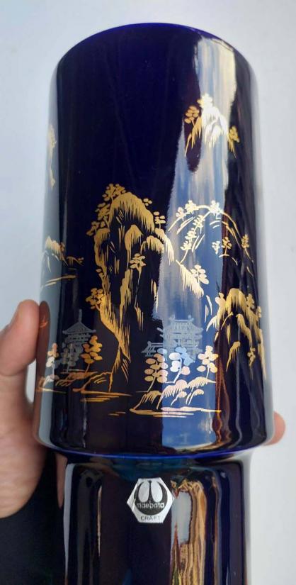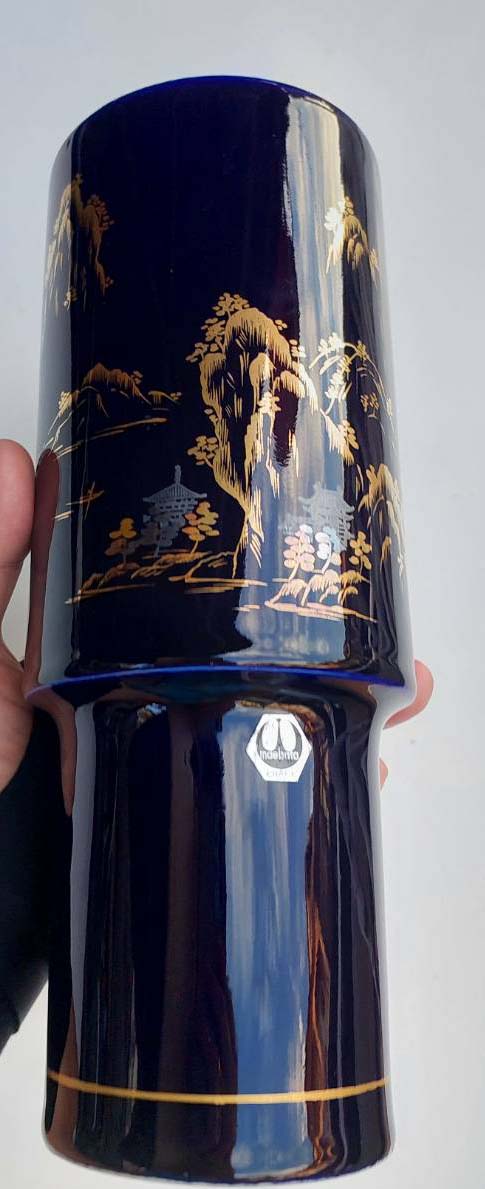 ***วัดใจ***แจกันเก่าเก็บเนื้อเซรามิกลายน้ำทอง งานฝีมือของญี่ปุ่น สูง 10 กว้าง 4 นิ้ว