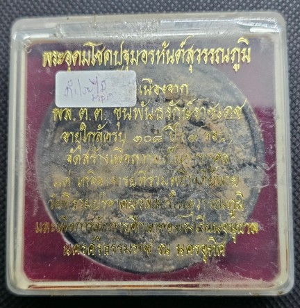 องค์พ่อจตุคามรามเทพ รุ่น แซยิด 108 ปี ออกปี 2549 เนื้อผงโรยไม้ ขนาด 5.5 ซม. กล่องปฐมฯ เคาะแรกแดงครับ |