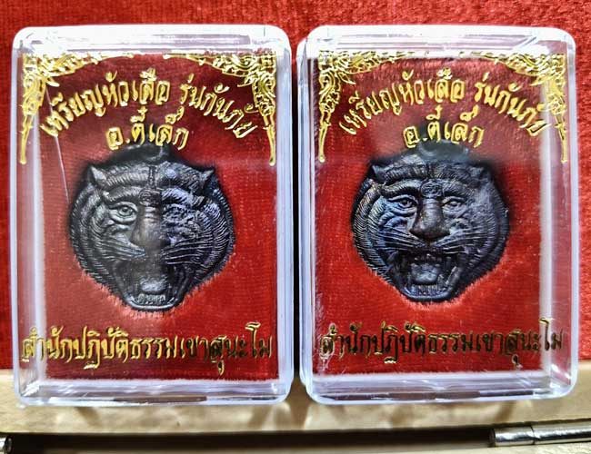 แบ่งปัน เหรียญ หัวเสือ รุ่นกันภัย พระอาจารย์ตี๋เล็ก สำนักปฏิบัติธรรมเขาสุนะโม แพ็คคู่ 2 องค์