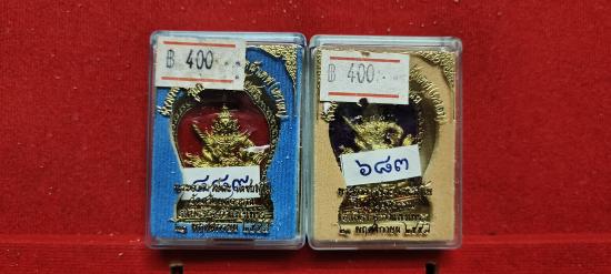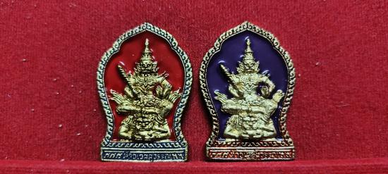 เหรียญท้าวเวสสุวรรณ 2 หน้า พระอาจารย์ละ วัดสร้อยสุวรรณ จ.กำแพงเพชร ปี 57 พร้อมกล่องเดิมๆ ชุด2องค์ เนื้อทองทิพย์ลงยาแดง-น้ำเงิน หมายเลข489 ลงยาม่วง หมายเลข683 ประกันแท้