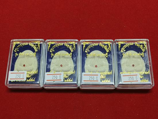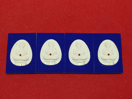 แบ่งปัน พระผงปิดตา รุ่นเจ้าสัวมหาเศรษฐี ครูบากฤษณะ อินทฺวัณโณ เนื้อผงพุทธคุณสีขาว ฝังพลอยแดง ฝังตะกรุด3k ด้านหลังฝังจีวร เม็ดมวลสาร ชุด 4 องค์ ประกันแท้