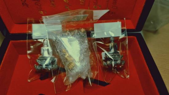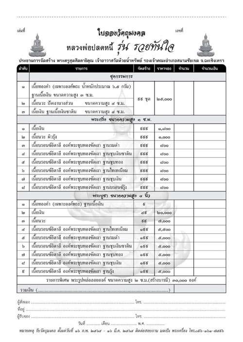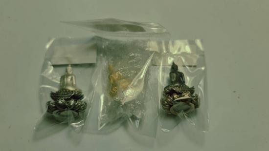1. เนื้อทองคำ (เฉพาะองค์พระน้ำหนักประมาณ 6.5 กรัม) ฐานเนื้อเงิน ขนาดความสูง 3 ซม.
