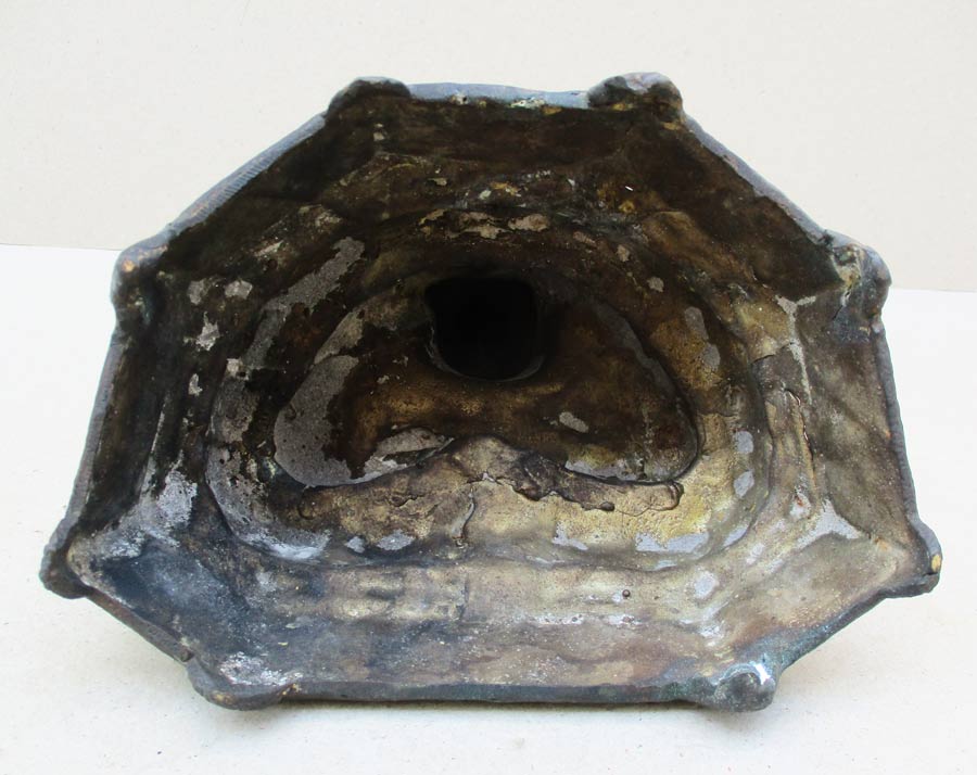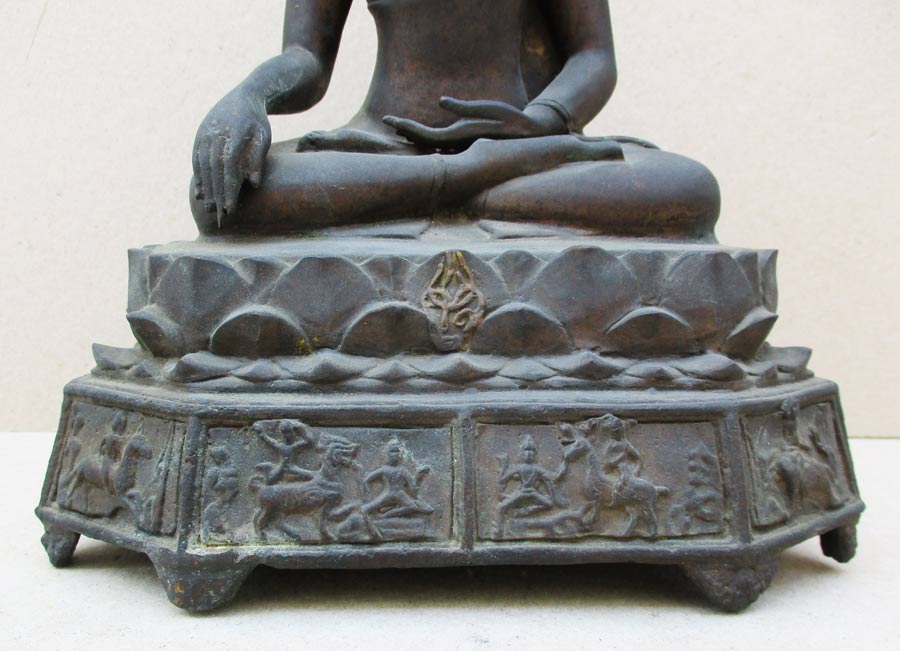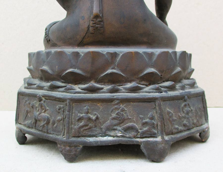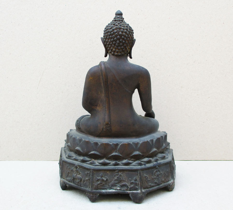 ฐานกว้าง 7.5 นิ้ว....ส่วนลึก 5 นิ้ว หล่อขอบหนาๆ มีดินฝรั่งเทาๆ มีตะปูชนวนขึ้นหุ่นเทียนองค์พระ ฯ