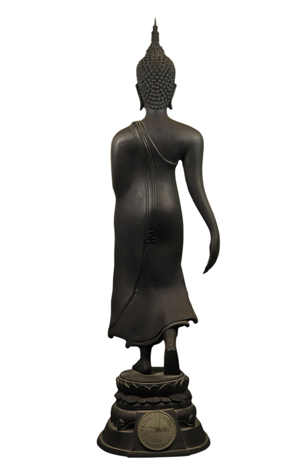 พระพุทธปางลีลา หลวงพ่อศรี มหาวีโร วัดป่ากุง จ.ร้อยเอ็ด พ.ศ.2 526 รุ่นแรก สูงรวมฐาน 14 นิ้ว เนื้อโลหะรมมันปู ผิวหิ้ง สภาพพุทธศิลป์สวยงดงามพร้อมบัตรรับรองจากสถาบันการันตีพระ !!