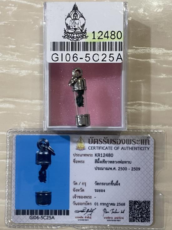 (เคาะแดง1900) +บัตรสมาคม สีผึ้งเขียวหลวงพ่อทาบ วัดกระบกขึ้นผึ้ง