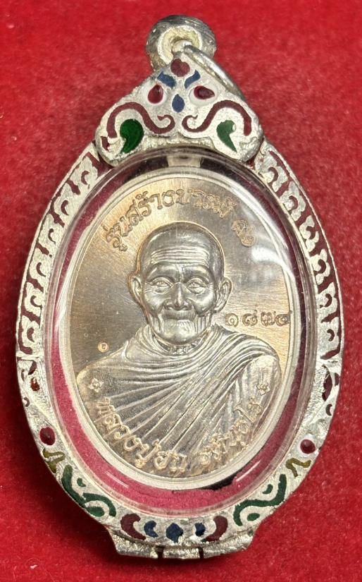 หรียญสวยแห่งปี!!เหรียญห่มคลุมรุ่นแรกสร้างบารมี91หลวงปู่ฮก เหรียญรูปไข่เนื้อทองแดงฉาบเงินหมายเลข1874 ใ่กรอบเงินผสมพร้อมใช้ครับ