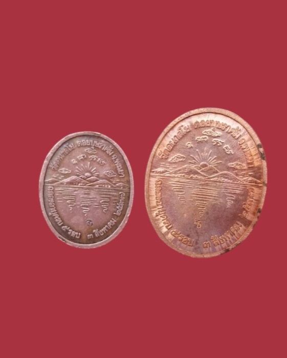 เหรียญรุ่นแรกหลวงพ่อไพบูลย์หน้าตรง 5 รอบ 60ปี หลังกว๊านพะเยาพิมพ์เล็กและพิมพ์ใหญ่เนื้อทองแดง
