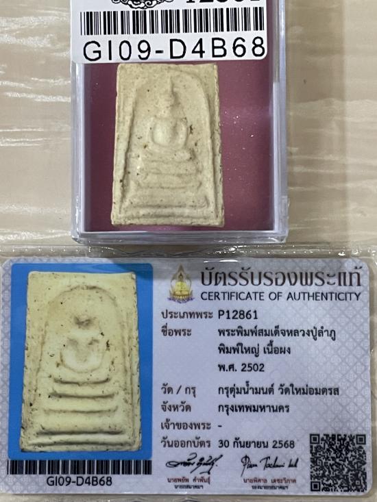 (เคาะแดง3900) +บัตรสมาคม สมเด็จพิมพ์ใหญ่ หลวงปู่ลำภู ลงกรุตุ่มน้ำมนต์ |