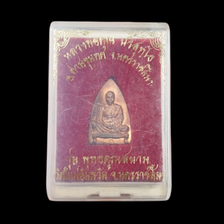 หลวงพ่อคูณ เหรียญเตารีดพิมพ์เล็ก รุ่นพุทธคูณสยาม ออกวัดใหม่อัมพวัน ปี ๒๕๕๔ หมายเลข ๑๓๙ เนื้อนวโลหะ พร้อมกล่อง