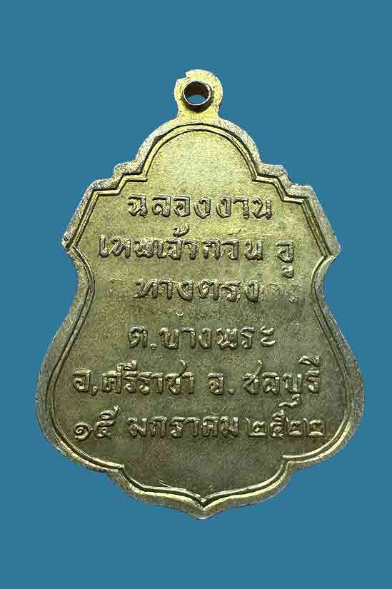 เหรียญเจ้าพ่อกวนอูสามพี่น้อง ฉลองงานเทพเจ้ากวนอูทางตรง ต.บาง พระ อ.ศรีราชา จ.ชลบุรี ปี22