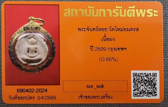 ## บัตรรับรองพระแท้ ออกโดย สถาบันการันตีพระ no. 690402-2024