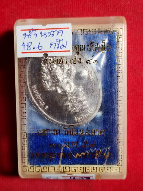 เหรียญหลวงพ่อคูณ ปริสุทโธ รุ่น เฮง เฮง 91 ออกวัดบ้านไร่ ปี 2557 เนื้อ เงิน หมายเลข 492 สภาพสวย เคาะเดียวแดง