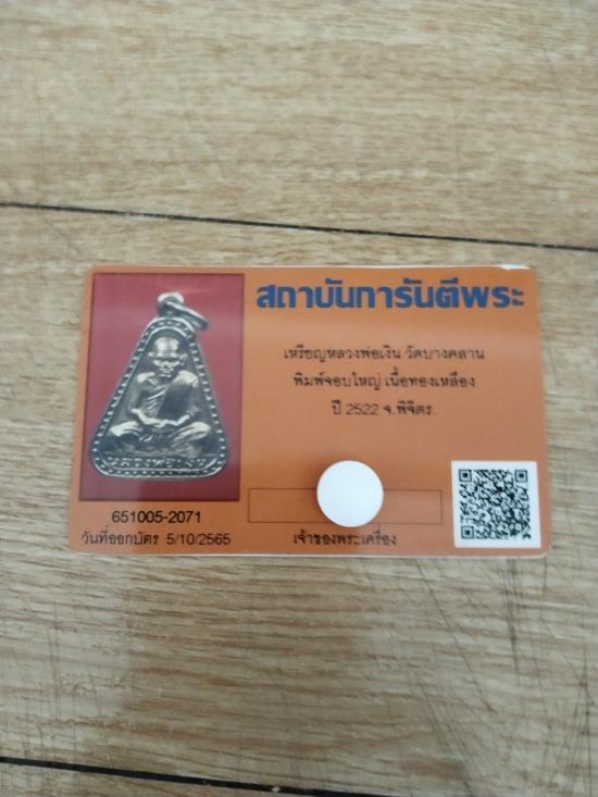 **เหรียญจอบใหญ่ หลวงพ่อเงิน วัดบางคลาน เนื้อทองเหลือง ปี 2522 พร้อมบัตร สวยๆครับ