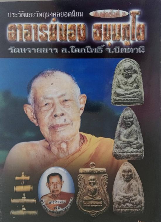หนังสือประวัติและวัตถุมงคลยอดนิยมอาจารย์นอง วัดทรายขาวจังหวัดปัตตานีพิมพ์ครั้งที่ 2 ความหนา 64 หน้าเคาะเดียวค่ะ |