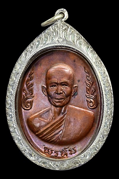 เหรียญ กนกข้าง หลวงพ่อพรหม วัดขนอนเหนือ เนื้อทองแดง ปี 2519 สภาพผิวไฟสวย เลี่ยมกรอบเงินพร้อมใช้
