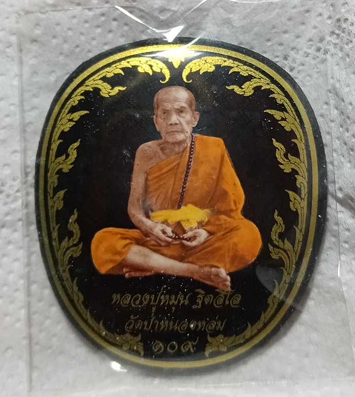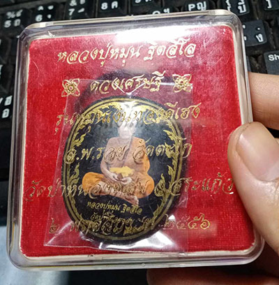 ล็อกเก็ตฉากดำ ลายกนกทอง หลวงปู่หมุน รุ่นหมุนเงินทองดีเฮง ปี56 สวยเดิมนอนกล่องเดิม