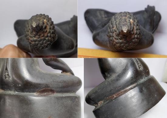 ก้นดินไทย และมีคราบดินไทยตามองค์พระเดิม ๆ ตามพระศกและซอกฝ่ามือ