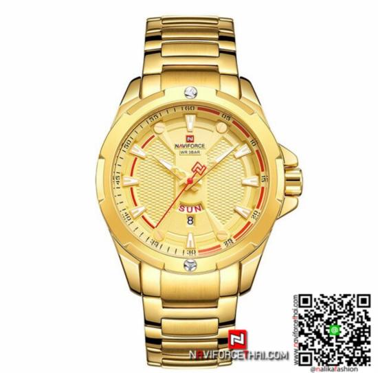 ของใหม่ นาฬิกา Naviforce NF 9161 สีทอง ใส่เเล้วดูดี เท่ห์ๆ ของแท้ ไม่มีกล่อง บอกระบบ Quartz