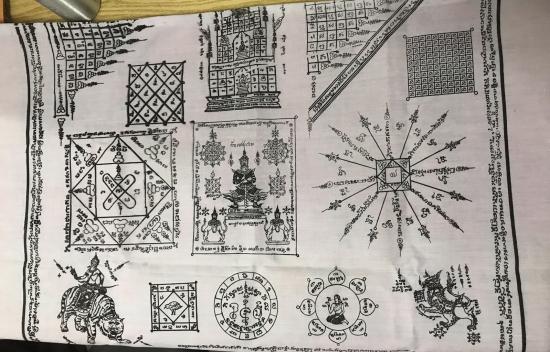 ผ้ายันต์พัดโบก มหาลาภ ยันต์กันฟ้าลง ฟ้าผ่า หลวงปู่คร่ำ วัดวังหว้า ใหญประมาณ 27x43นิ้ว สภาพสวย |