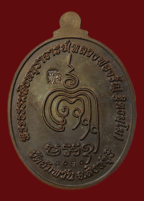 เหรียญเจริญพรล่าง หลวงพ่อจรัญ วัดอัมพวัน จ.สิงห์บุรี รุ่นเจริญพร เนื้อนวะโลหะ ปี 2554 ตอกโค๊ดสิงห์ เลข1030 แดง200