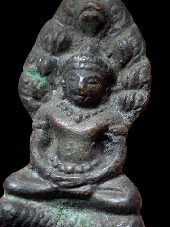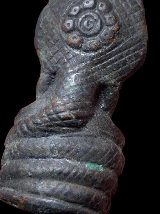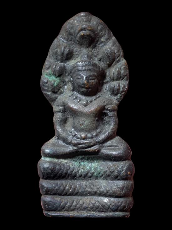 พระหล่อพิมพ์นาคปรกเนื้อโลหะเก่า อุดกริ่ง ไม่ทราบที่ครับ |