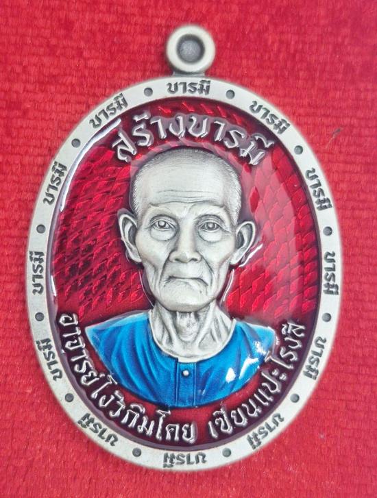 เหรียญสร้างบารมี อาจารย์โง้วกิมโคย เซียนแปะโรงสี จังหวัดปทุมธานี 2566 เนื้อเงินซาติน หมายเลข 14 ประกันแท้