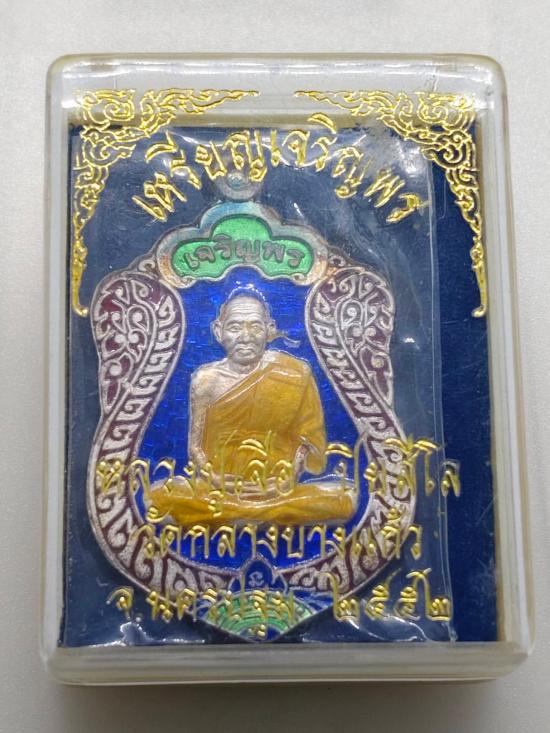 เหรียญเสมา เจริญพร2หน้า บน-ล่าง #เนื้อเงิน หลวงปู่เจือ วัดกลางบางแก้ว นครปฐม ปี 2552 เลข 4 หายาก สร้างน้อยมากครับ กล่องเดิม