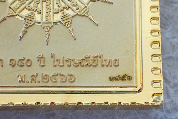 $เคาะแรกเบาวัดใจค่ะ เหรียญแสตมป์พญาครุฑ รุ่น สมบัติแผ่นดิน 140 ปี ไปรษณีย์ไทย พิธีใหญ่ วัดครุฑธาราม เนื้อชนวนชุบทองจิวเวลลี่ เลข ๑๘๕๖ (แจกพิธีนำฤกษ์) พร้อมกล่องเดิมค่ะ$