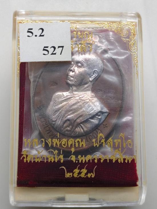 เหรียญเจ้าสัว หลวงพ่อคูณ ปริสุทโธ วัดบ้านไร่ พิมพ์หันข้าง ปี 2557 เนื้อนวะหน้ากากเงิน กล่องเดิม เลข 527 แยกจาก ชุดกรรมการเล็ก |