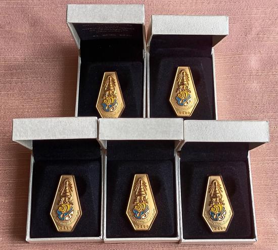 เข็มที่ระลึก พระราชพิธีถวายพระเพลิงพระบรมศพในหลวงร.9 ((( จำนวน 5 เข็ม ))) เก่าเก็บไม่ผ่านใช้ กล่องเดิม