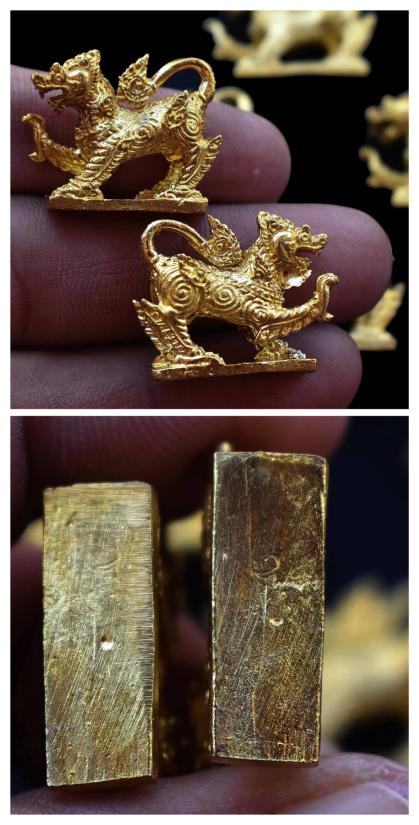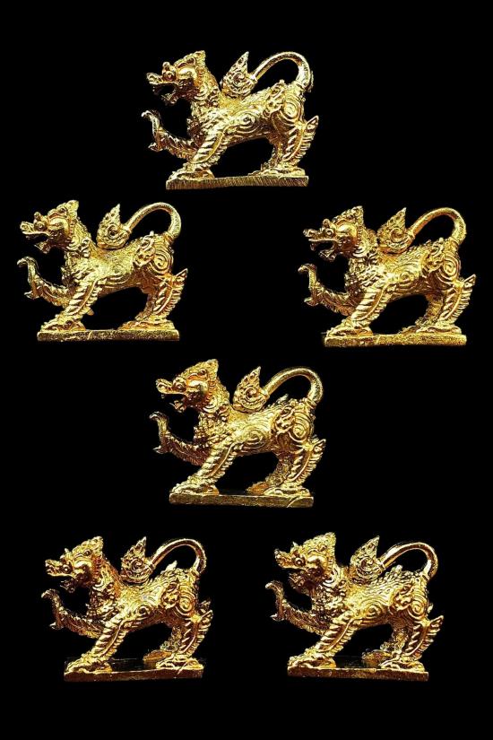 ชุด 6 องค์...สิงห์ตะปบเหยื่อ เนื้อทองเหลือง ปี 2557 หลวงพ่อชุม วัดหนองบัว จ.สุพรรณบุรี พร้อมซองรูปเดิมจากวัด สภาพพระตามรูปที่ลงทุกประการ (ขนาดสูงยาวประมาณ 2.1 x 2.5 ซม.)