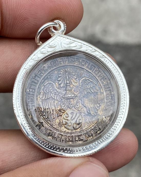 เหรียญคุ้มเกล้าเนื้อเงิน พร้อมเลี่ยมเงิน