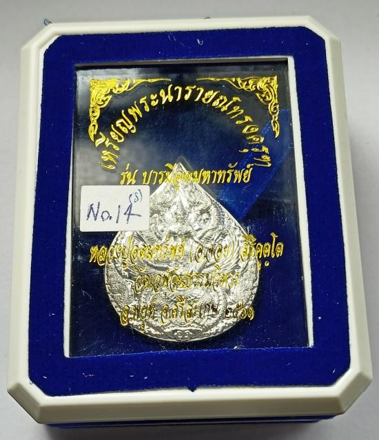 เหรียญ พระนารายณ์ทรงครุฑ รุ่นบารมีอุดมทรัพย์ หลวงปู่อุดมทรัพย์ สิริคุตฺโต (อาจารย์จ่อย) ปลุกเสก เนื้อเงิน เบอร์ 14 พร้อมกล่องครับ (เหรียญหนัก 26.80 กรัม) (S)