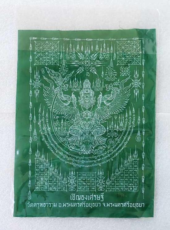 $เคาะแรกเบาวัดใจค่ะ ผ้ายันต์ รุ่น พญาครุฑเชิญธงเศรษฐี วัดครุฑธาราม จ.พระนครศรีอยุธยา ผืนเล็ก สีเขียว ขนาดประมาณ 11.5 x 8.5 นิ้ว เลข 1354 ค่ะ$ |
