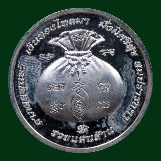 เหรียญรวยแสนล้าน หลวงพ่อรวย วัดตะโก ปี2551 เนื้อเงิน พิมพ์ใหญ่ หมายเลข 188 แดงเคาะแรก