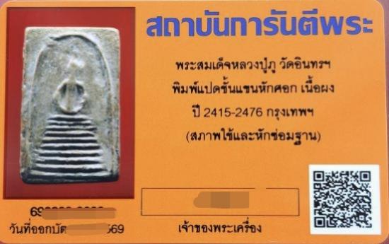 สมเด็จหลวงปู่ภู วัดอินทรวิหาร พิมพ์แปดชั้น แขนหักศอก เนื้อผง จ.กรุงเทพ พร้อมบัตรรับรองการันตี ระบุสภาพตามบัตรครับ